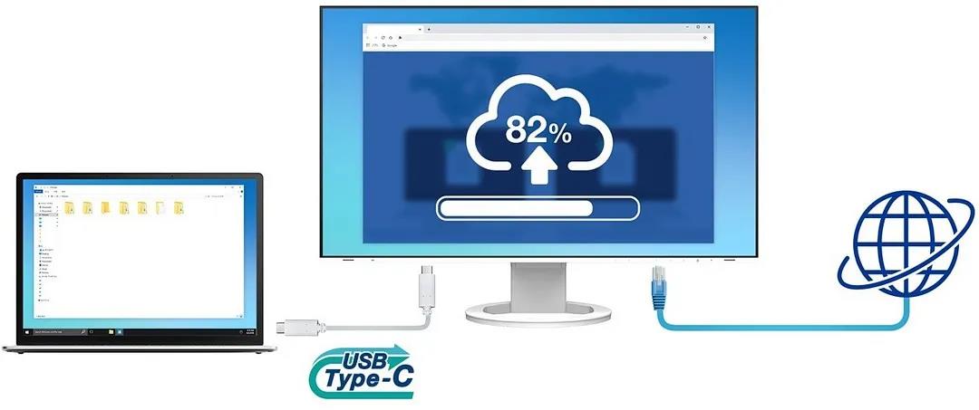 藝卓的旗艦級(jí) FlexScan 顯示器有一個(gè)內(nèi)置的 LAN 端口。通過(guò) USB Type-C 將筆記本電腦連接到顯示器以訪問(wèn)穩(wěn)定的網(wǎng)絡(luò)連接,即使筆記本電腦沒(méi)有專用 LAN 端口。
