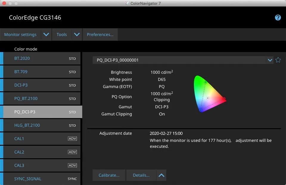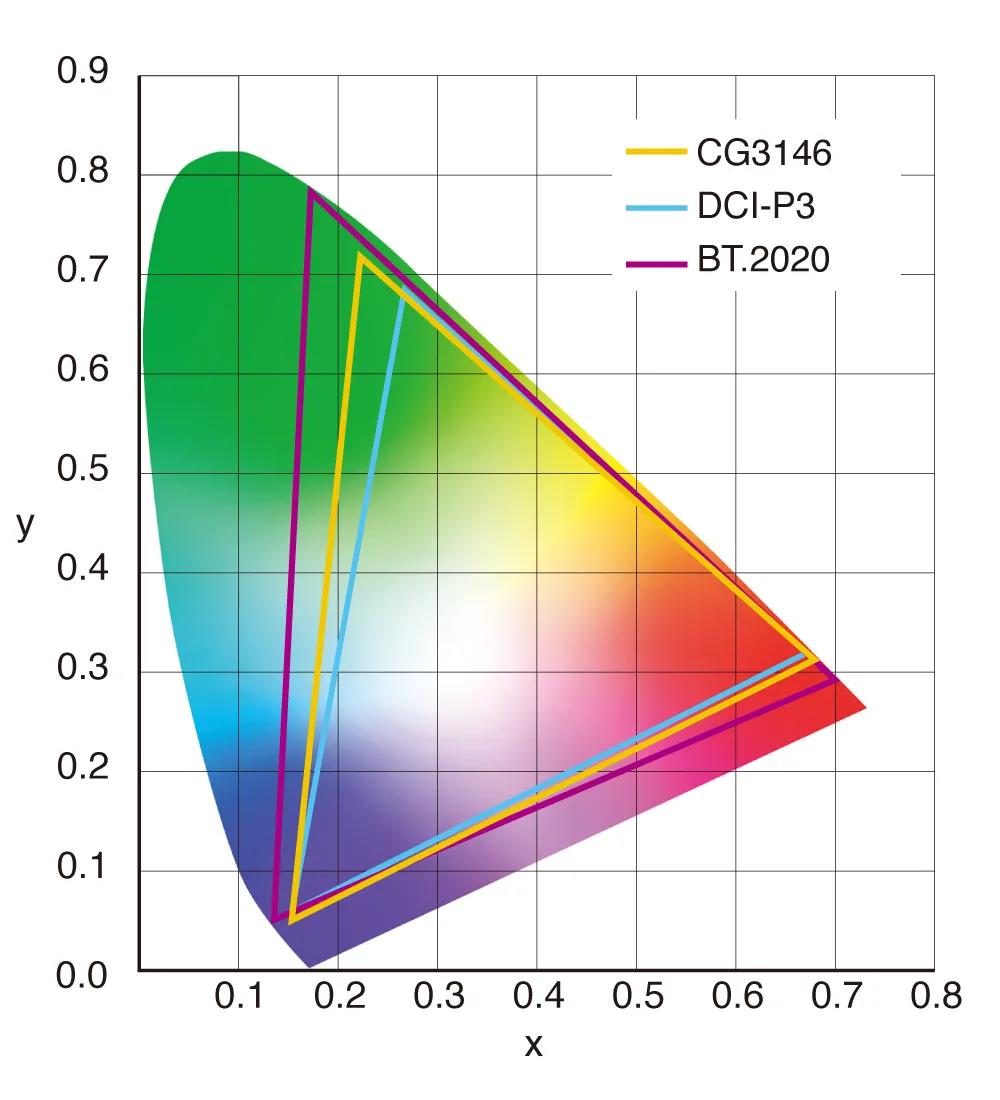 ColorEdge PROMINENCE CG3146 通過監(jiān)視器正面的按鈕可以快速訪問多種廣播標(biāo)準(zhǔn)的預(yù)設(shè)色彩模式??捎玫哪J接?BT.2020、BT.709、DCI-P3、PQ_BT.2100、PQ_DCI-P3、HLG_BT.2100、校準(zhǔn)和同步信號。