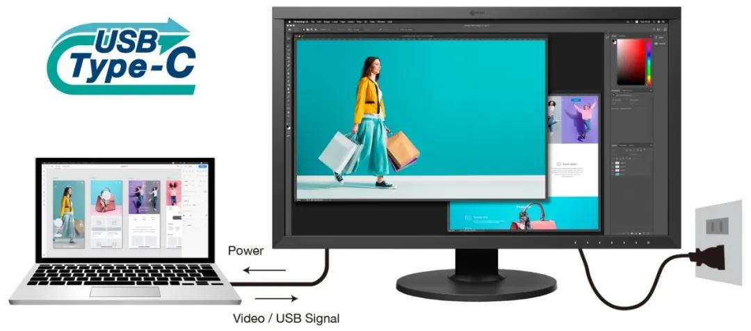 CS2400R加入了藝卓色彩管理系列中配備USB Type-C的產(chǎn)品陣列,可通過一根線纜輕松連接筆記本電腦。用戶無需過多的雜亂線纜或重新連接多個(gè)USB外設(shè),只需簡單插入即可開始創(chuàng)作。